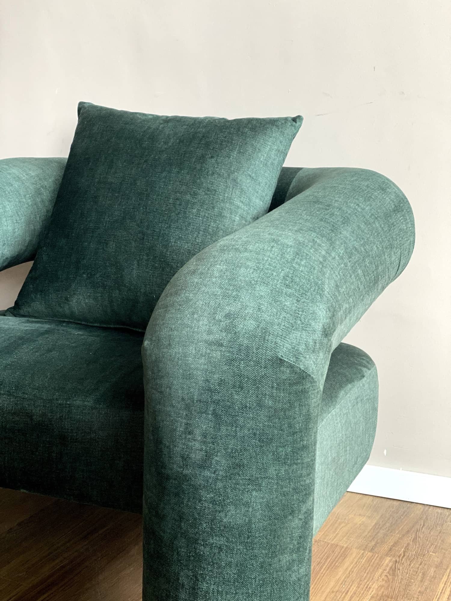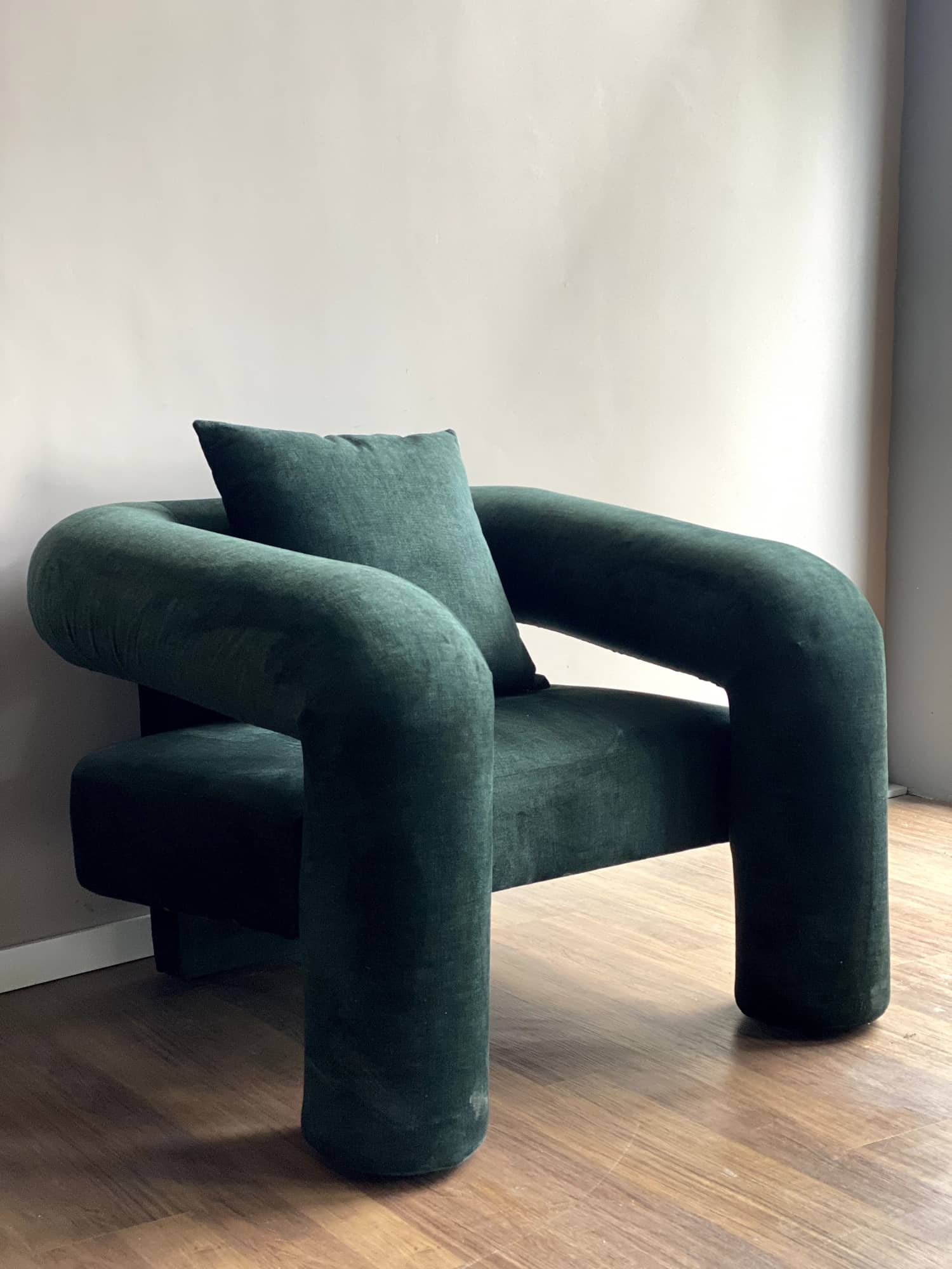 La silla sofá “Elysian” combina comodidad y sofisticación. Su diseño ergonómico y su tapicería de terciopelo suave en tonos esmeralda ofrecen un asiento lujoso perfecto para cualquier sala de estar moderna.